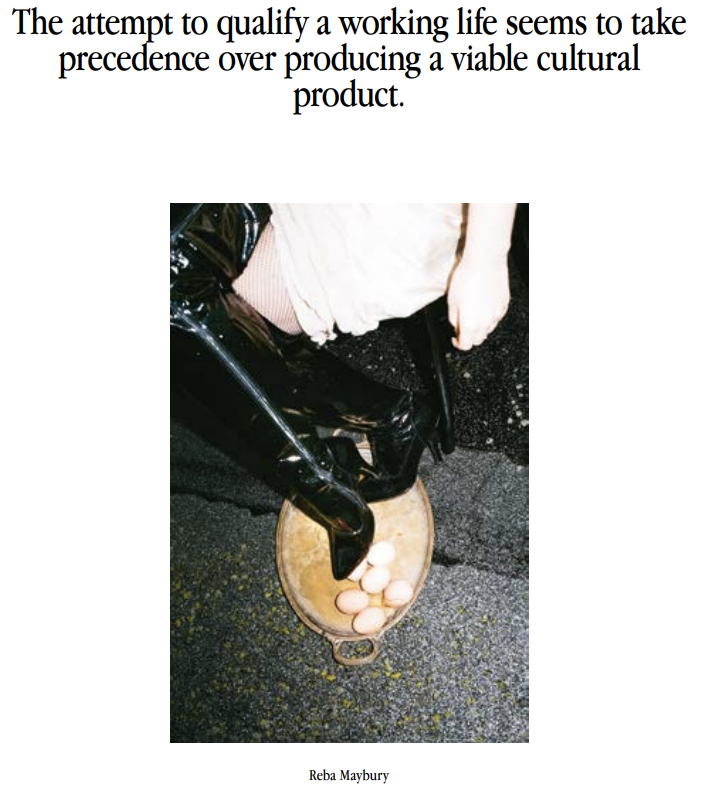 Sex work can’t be represented, but it can be exchanged with representation, which is why it’s illegal to launder money but not work. In Maybury’s case, it takes a seriously proficient contemporary artist to integrate an academic career with the online performance required of a professional dominatrix; it takes a high-end sex worker to pay for, and run, a publishing house for experimental literature. That Maybury is able to claim these roles publicly, with the backing of both the art world and the university where she teaches, is itself evidence of the elite cultural strata the working artist occupies today.